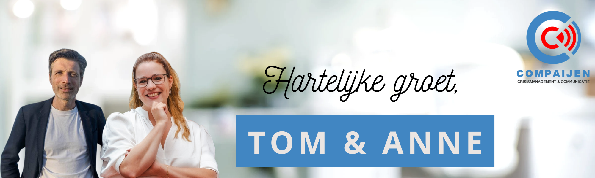 Dinsdagmiddag 10 februari van 16:00 tot 16:45 uur geven Tom Compaijen en Frank Vergeer een exclusief webinar over het Crisiscommunicatieteam van de toekomst, speciaal voor zorginstellingen en ziekenhuizen. In het webinar geven zij antwoord op de vraag: 'Hoe kun je met 2 of 3 mensen toch een volledig crisiscommunicatieteam draaien?'
